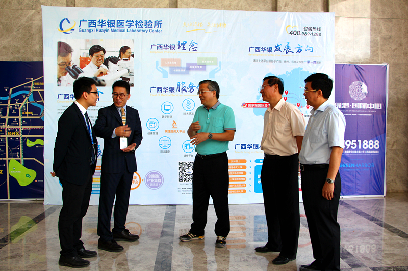 當(dāng)天下午,周紅波一行首先來到位于綠港·國際中心B4棟的廣西華銀醫(yī)學(xué)檢測所,聽取了廣西華銀醫(yī)學(xué)檢測所相關(guān)負(fù)責(zé)人的企業(yè)生產(chǎn)經(jīng)營情況匯報(bào),走訪該所廣西醫(yī)學(xué)檢驗(yàn)中心、廣西轉(zhuǎn)化醫(yī)學(xué)研究中心、東盟國際遠(yuǎn)程病理診斷中心,實(shí)地了解實(shí)驗(yàn)室建設(shè)運(yùn)營情況。廣西華銀醫(yī)學(xué)檢測所于2016年1月進(jìn)駐綠港·國際中心,以4500平米實(shí)驗(yàn)室作為廣西總部基地,業(yè)務(wù)范圍輻射廣西、云南及東盟各國,總投資規(guī)模近1億元,引入全國第一條完整的微生物全自動(dòng)流水線,建設(shè)了國內(nèi)第一家東盟遠(yuǎn)程病理診斷中心以及全國最大規(guī)模的精準(zhǔn)醫(yī)學(xué)實(shí)驗(yàn)中心。