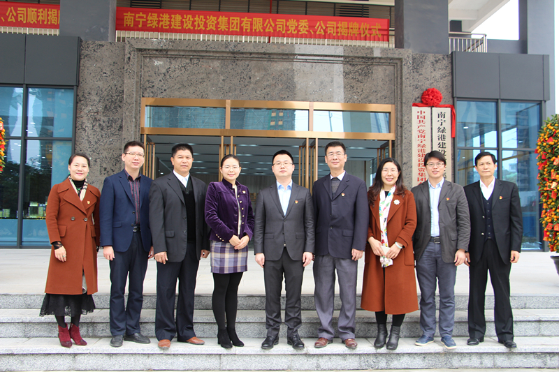 經(jīng)開(kāi)區(qū)黨工委書(shū)記、管委會(huì)主任何尚漢,經(jīng)開(kāi)區(qū)黨工委副書(shū)記覃傳財(cái),綠港集團(tuán)黨委書(shū)記、董事長(zhǎng)、總經(jīng)理龔國(guó)強(qiáng),綠港集團(tuán)副總經(jīng)理陸羿冰共同為綠港集團(tuán)黨委、公司揭牌