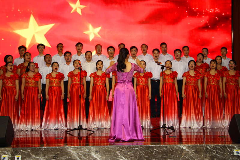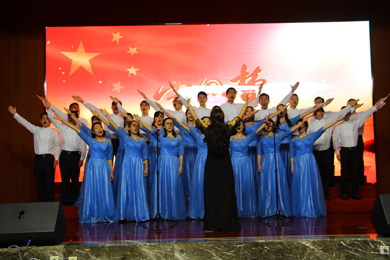 集團領(lǐng)導班子成員、總經(jīng)理助理上臺演唱《心會跟愛一起走》
