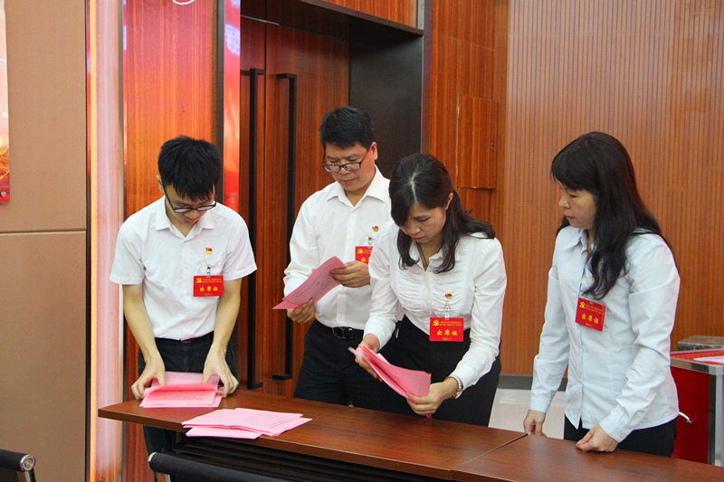 上午八點十分,大會全體工作人員提前到位,大會籌備會務(wù)組人員整齊地擺放好簽到表、出席證、嘉賓證和列席證,做好迎接大會的準備。計票人、監(jiān)票人會前碰頭,明確分工任務(wù)。