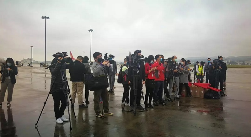 媒體早早到來南寧吳圩機(jī)場,靜候英雄凱旋。