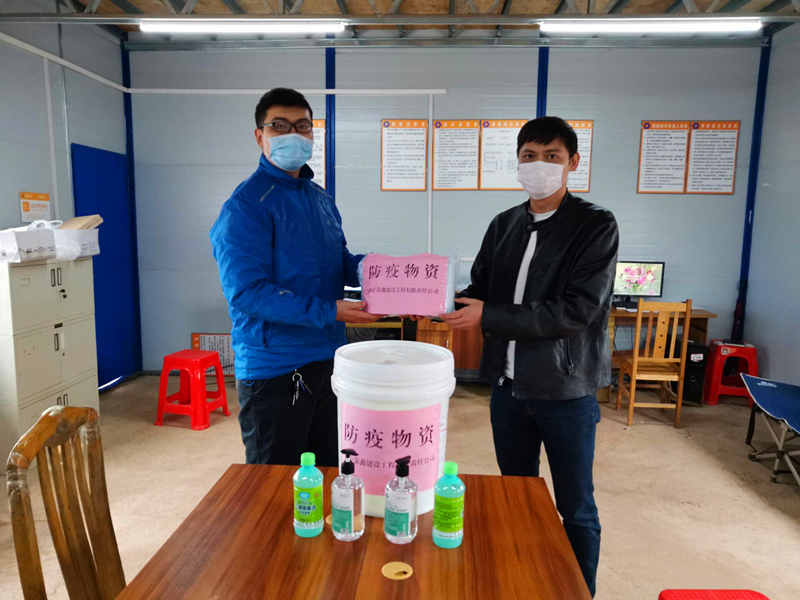 榮鑫公司副總經(jīng)理黎杰代表公司到項(xiàng)目現(xiàn)場送上防疫物資
