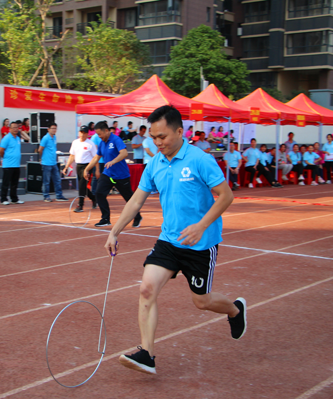 《滾鐵環(huán)》(科巨公司 盧艷芳)圖片說明:2019年綠港集團(tuán)”團(tuán)結(jié)杯“運動會上,職工們參加趣味項目滾鐵環(huán)