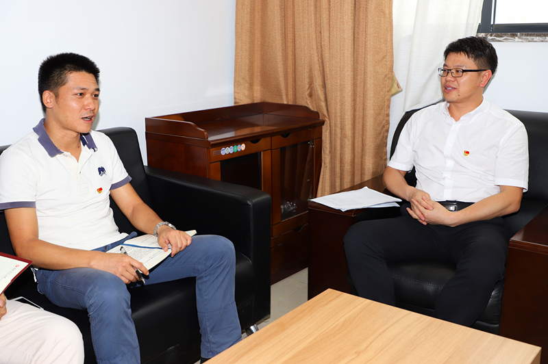 集團(tuán)黨委書(shū)記、董事長(zhǎng)龔國(guó)強(qiáng)與入黨積極分子胡志勇談心談話