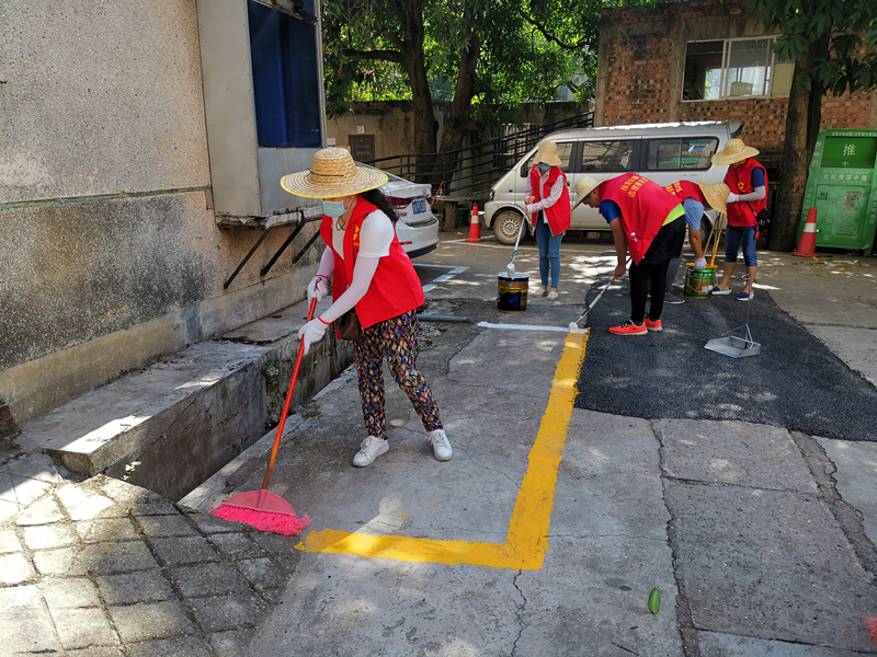 志愿者在劃停車(chē)線(王振霖)