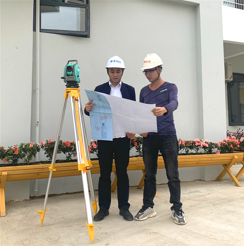 項目建設初期,受項目場地限制只能安排一臺推土機、挖掘機在項目地塊上推出一條道路,在凹凸不平的菜地之間回填用來建設項目教學樓以及附屬工程、設施。面對惡劣環(huán)境,韋密白天指導施工單位管理人員帶著工人們平整場地,搭建臨舍,晚上與項目管理人員共同研究施工計劃、商量趕工方案,安排任務分工,齊心協(xié)力、不等不靠,全力奮戰(zhàn),沒有電就用現(xiàn)場汽油機發(fā)電,沒有水就用市政灑水車供水,一步步攻堅克難,確保項目建設如期推進。