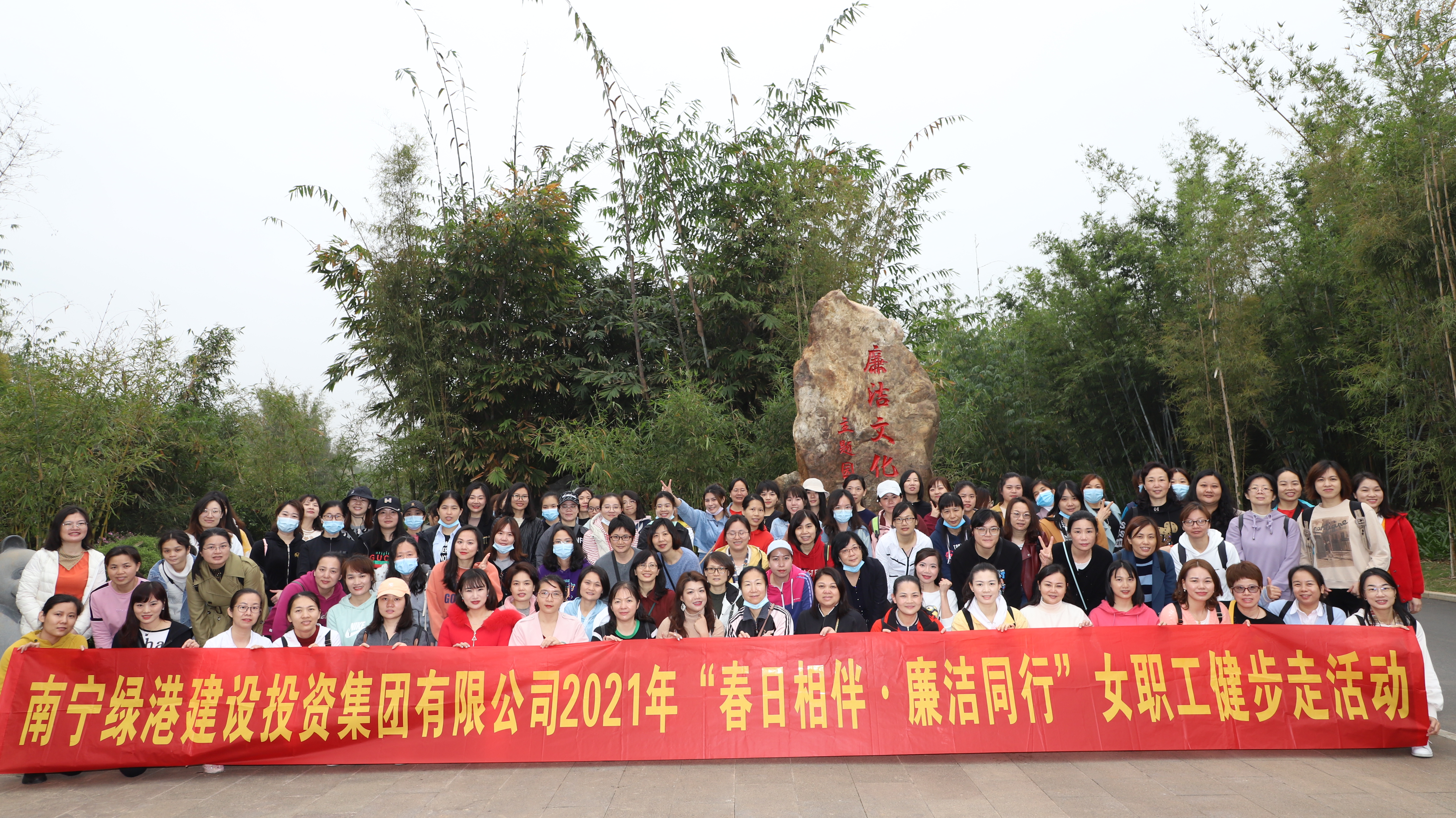 陽(yáng)春三月,春意盎然。為慶祝第111個(gè)“三八”國(guó)際婦女節(jié),充分展示婦女職工積極進(jìn)取、昂揚(yáng)向上的巾幗風(fēng)采,弘揚(yáng)“綠色運(yùn)動(dòng)”健康理念,倡導(dǎo)健康文明生活方式,3月8日,綠港集團(tuán)黨委、綠港集團(tuán)工會(huì)、綠港集團(tuán)女工委在南寧青秀山共同舉辦“春日相伴·廉潔同行”健步走活動(dòng)。集團(tuán)公司黨委書(shū)記、董事長(zhǎng)龔國(guó)強(qiáng),集團(tuán)公司黨委副書(shū)記、總經(jīng)理鄧?yán)^慧,集團(tuán)公司黨委委員、副總經(jīng)理陸?hù)啾?,集團(tuán)公司黨委委員、副總經(jīng)理、工會(huì)主席黃麗琴,集團(tuán)公司財(cái)務(wù)總監(jiān)關(guān)月娥出席活動(dòng)。綠港集團(tuán)全體管理崗位女職工及其親屬約130人參加。