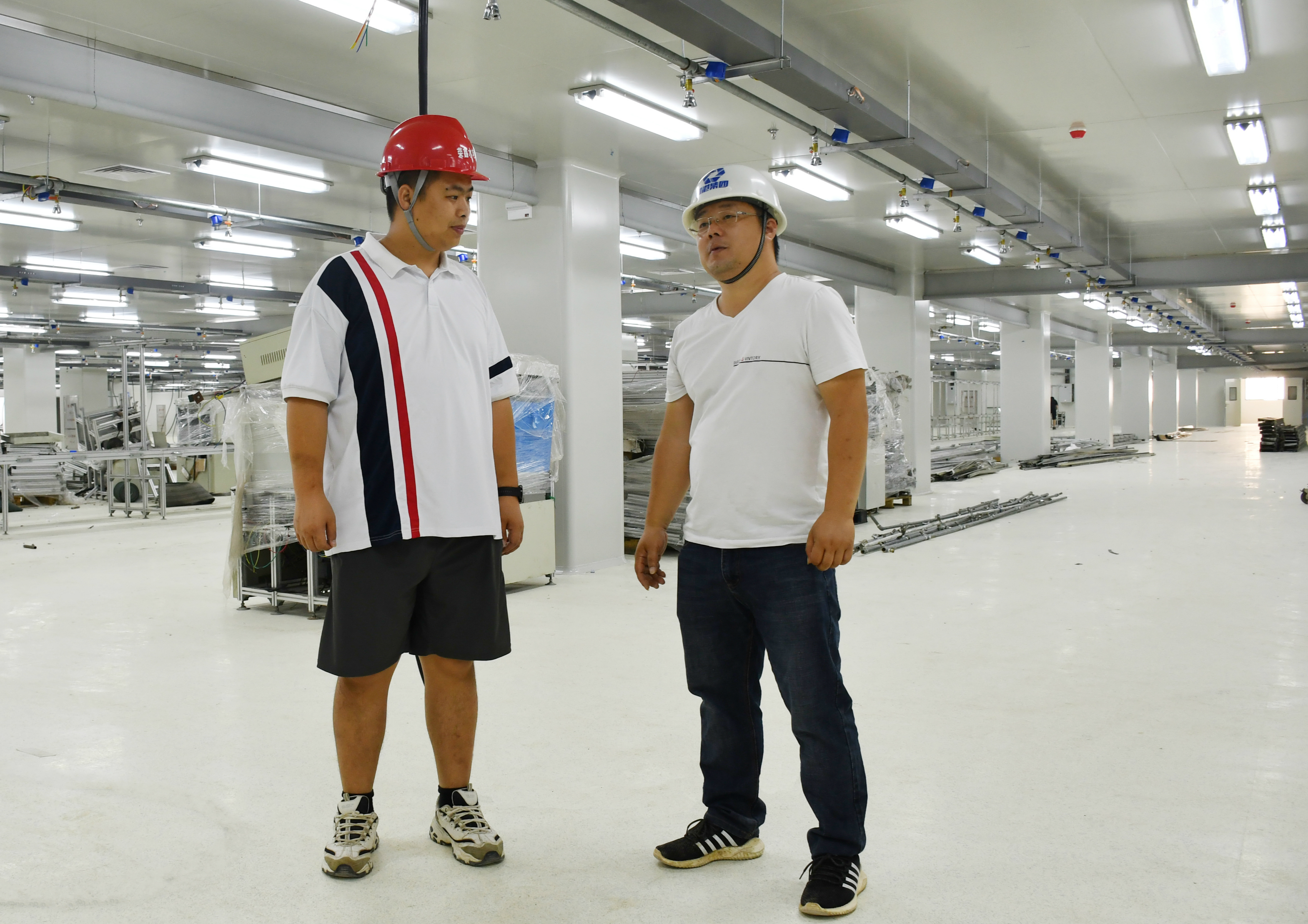 項目開工建設后,他時常召集項目成員研究探討優(yōu)質(zhì)高效的施工技術、多工種交叉施工作業(yè)等施工方案,“5+2”、“白加黑”地趕工建設,僅用60天,確保了項目第一階段9號廠房1、2層裝修施工任務于2018年6月28日圓滿完成。在2018年9月10日的瑞聲廠區(qū)舉行項目投產(chǎn)儀式,南寧市委王小東書記宣布項目正式投產(chǎn)。王小東書記、瑞聲公司潘董事長都對項目建設工作給予高度評價,稱其為“南寧速度”。