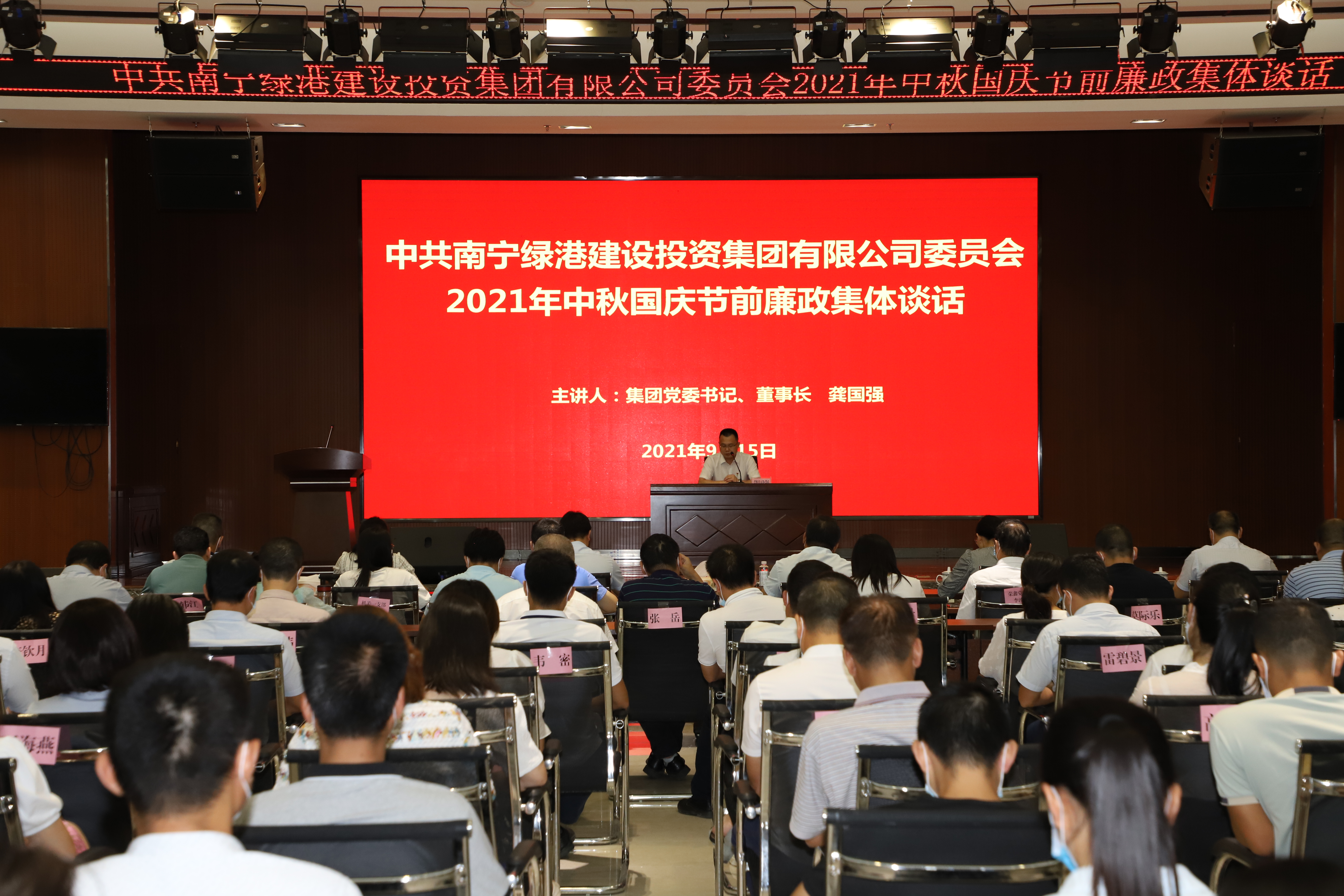近日,綠港集團黨委組織召開2021年中秋國慶節(jié)前廉政集體談話會。集團黨委書記、董事長龔國強出席會議并作廉政集體談話。集團領(lǐng)導(dǎo)班子全體成員、集團各部門及各子公司中層副職以上人員參加會議。