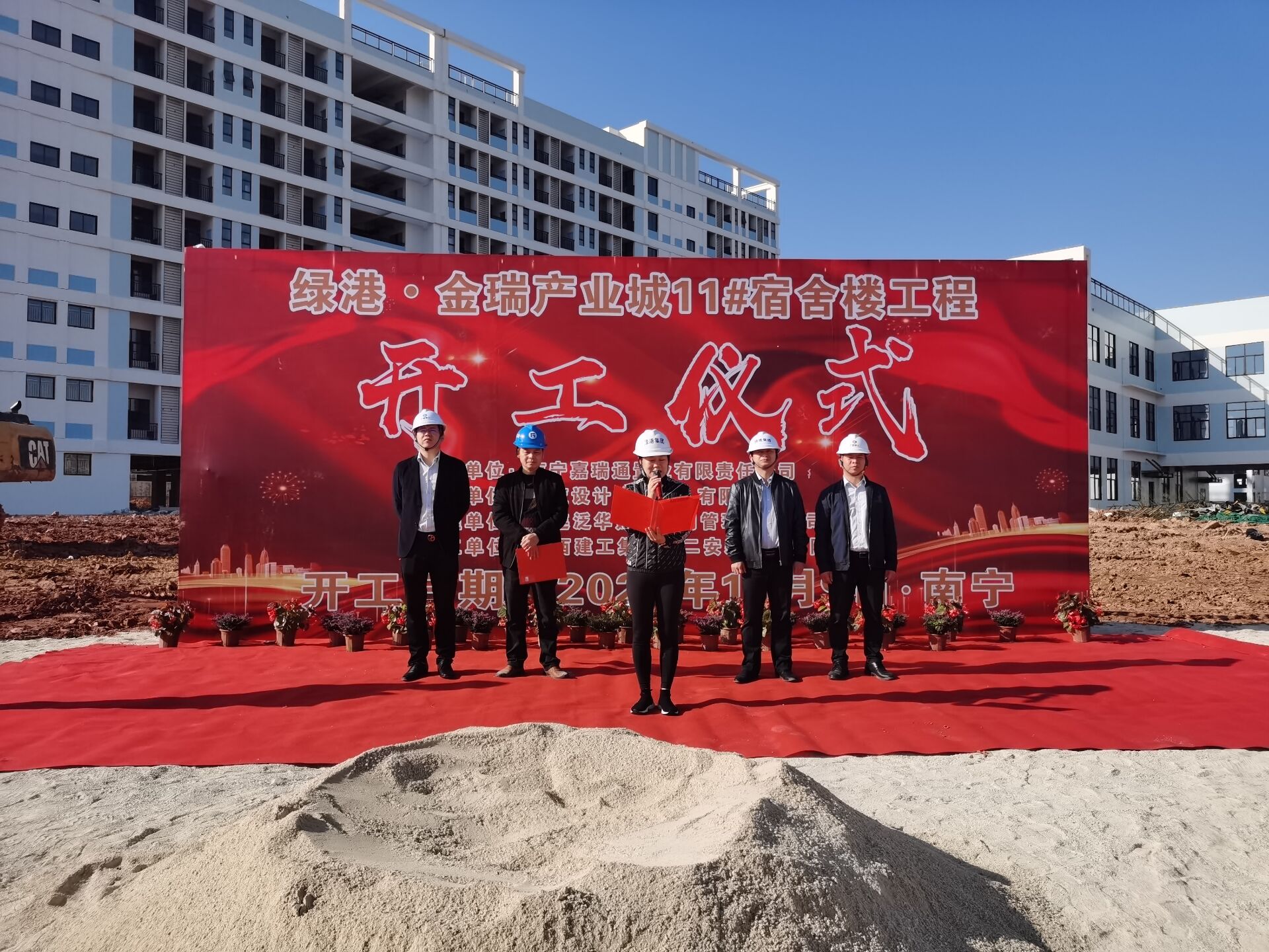 綠港集團(tuán)黨委委員、副總經(jīng)理、營(yíng)銷管理中心、嘉瑞通公司總經(jīng)理黃麗琴為儀式致辭并宣布綠港·金瑞產(chǎn)業(yè)城11#宿舍樓工程正式開(kāi)工建設(shè)。她指出,項(xiàng)目在經(jīng)開(kāi)區(qū)發(fā)展進(jìn)程中具有里程碑意義,希望各參建方要履行承諾,精心組織,嚴(yán)格管理,圍繞項(xiàng)目開(kāi)竣工目標(biāo),倒排工期,科學(xué)施工,確保項(xiàng)目高質(zhì)量、高水平、高效率推進(jìn)。她表示,綠港集團(tuán)將一如既往弘揚(yáng)國(guó)企工匠精神,再造精品,為服務(wù)南寧工業(yè)高質(zhì)量發(fā)展提供強(qiáng)勁動(dòng)能。