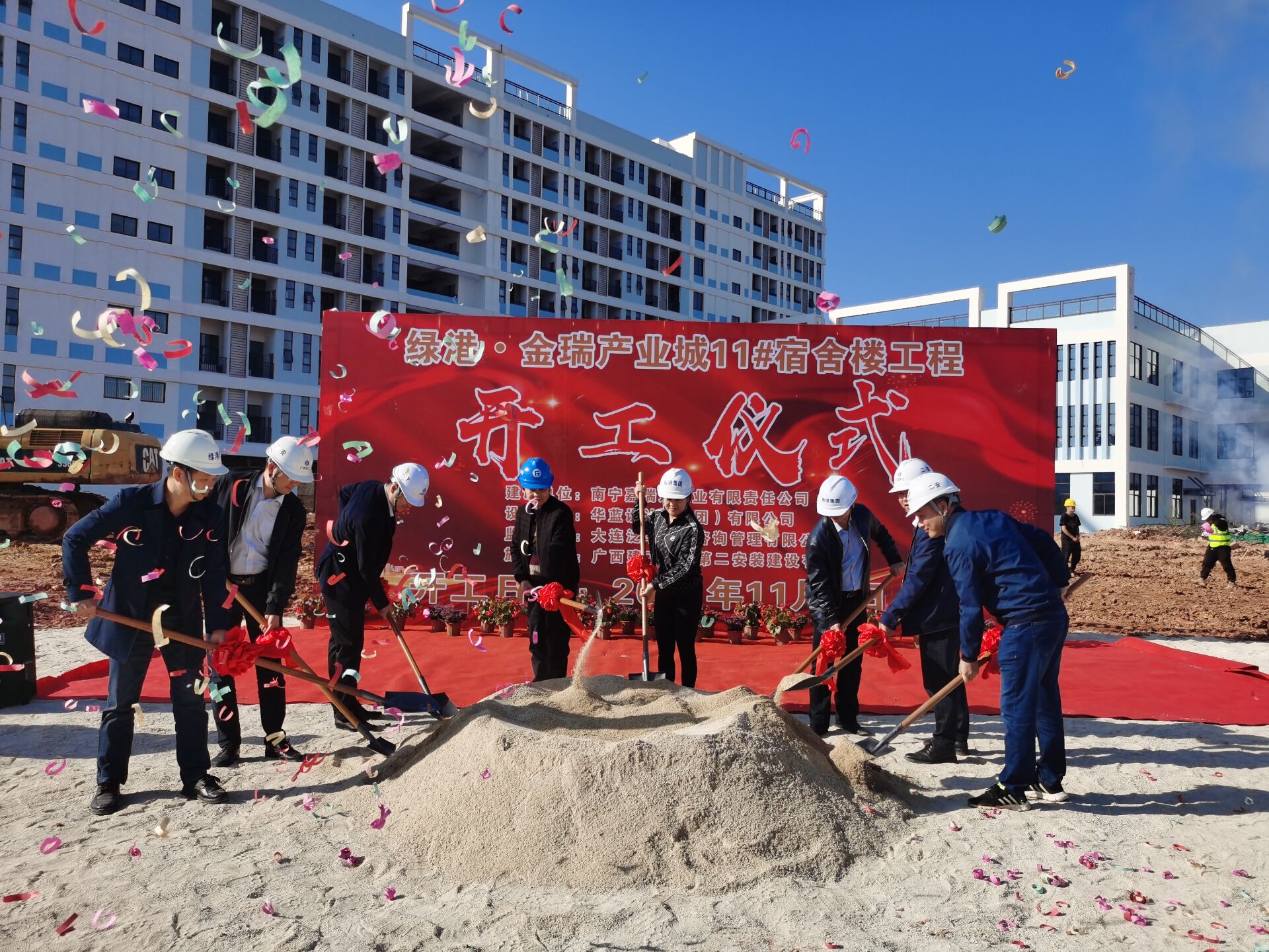 鞭炮齊鳴,禮花綻放。11月9日,由綠港集團(tuán)下屬嘉瑞通公司投資建設(shè)的綠港?金瑞產(chǎn)業(yè)城11#宿舍樓工程舉行開(kāi)工儀式。