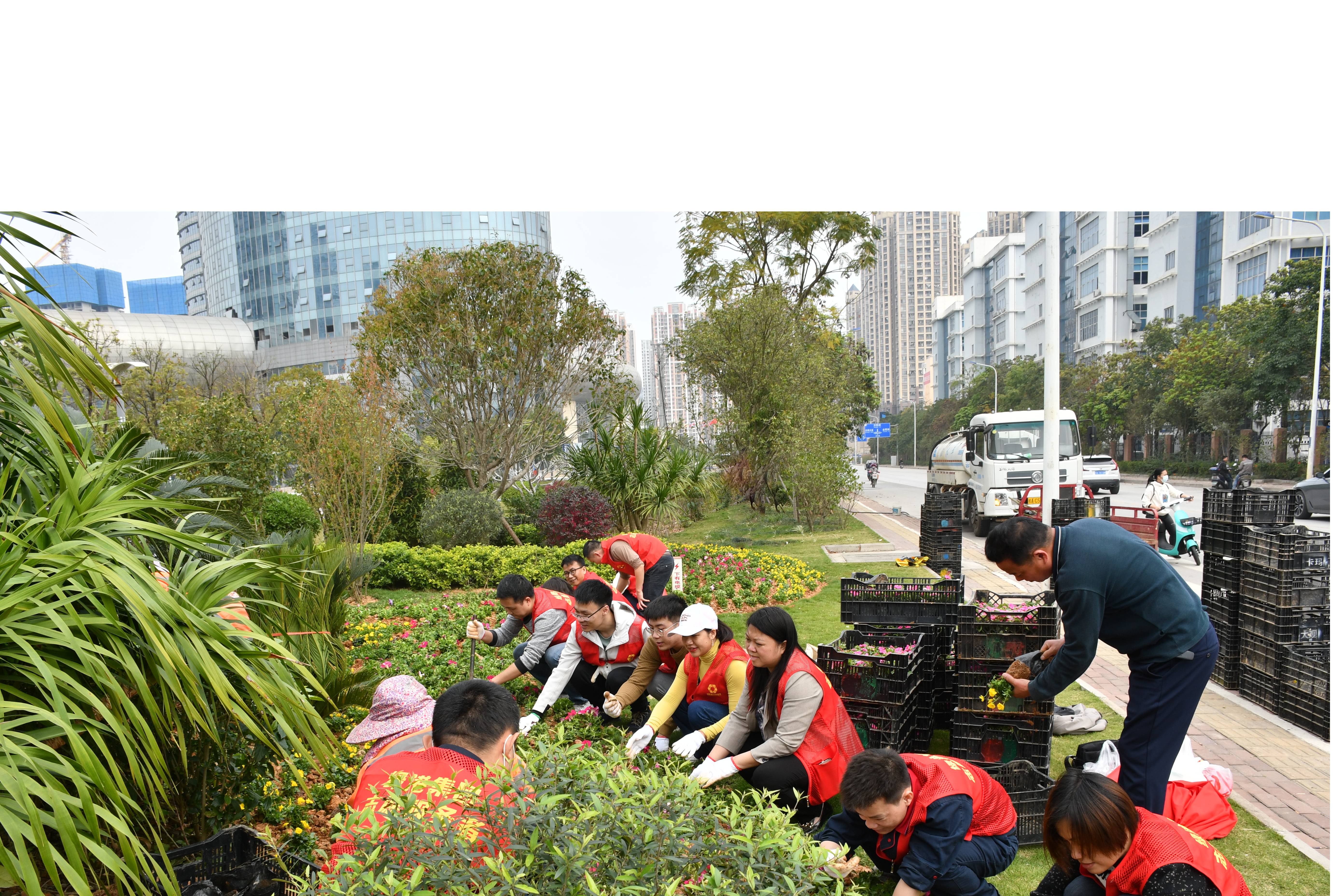 活動現(xiàn)場,志愿者們熱情高漲,在園林種植技術人員講解種植要點后,大家兩人一組,開始種植。挖坑、栽苗、培土、踩實,有序地將一顆顆綠植栽種入土,活動現(xiàn)場一片熱火朝天景象。經過一個上午的辛勤勞作,花圃里就種滿了2000多棵綠植,連片規(guī)范的花草錯落有致、迎風挺立,呈現(xiàn)出一派生機盎然的景象,為城市增添了一抹新綠。