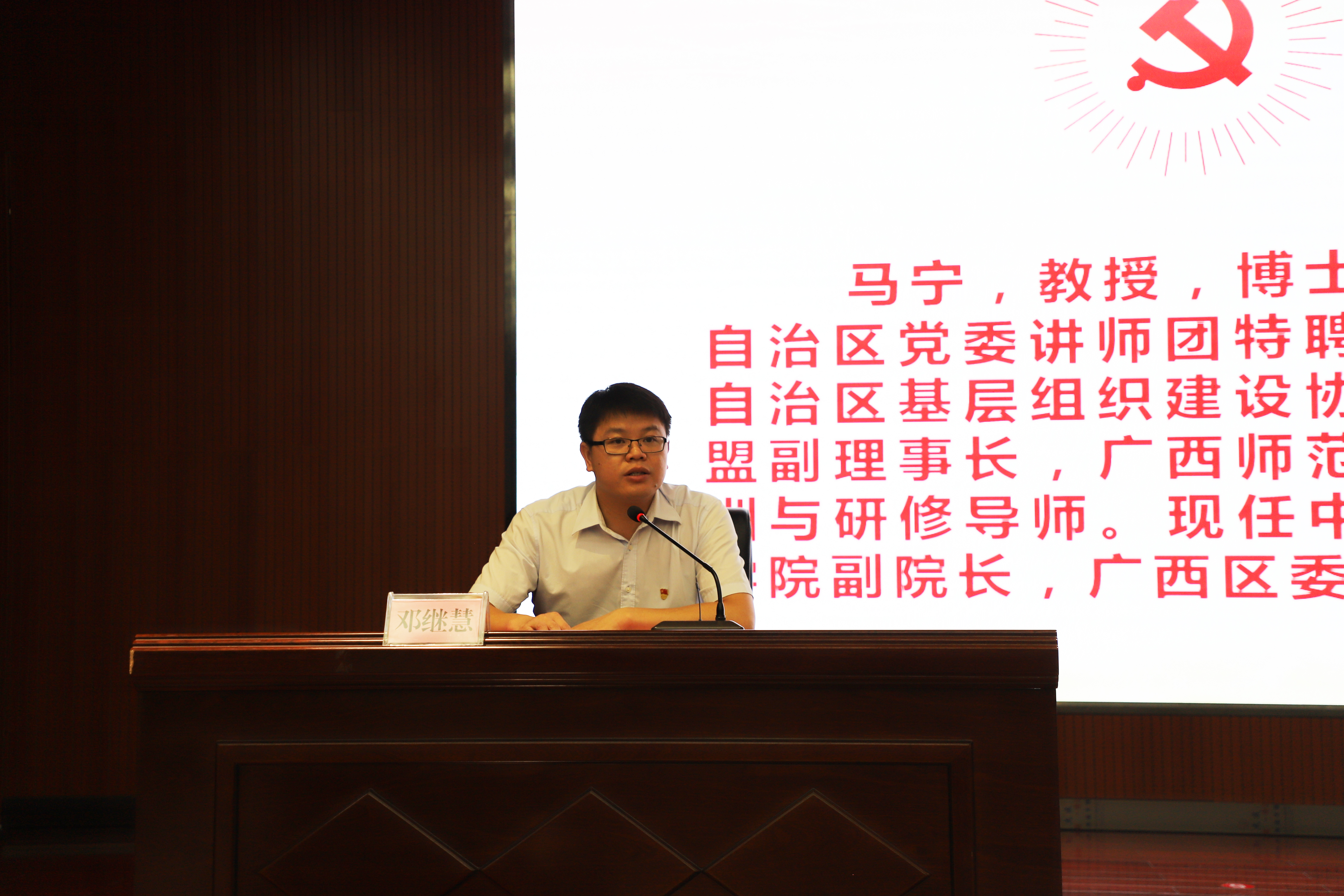 為進(jìn)一步深入學(xué)習(xí)貫徹習(xí)近平新時代中國特色社會主義思想,增強(qiáng)廣大黨員干部理想信念,進(jìn)一步解放思想,改革創(chuàng)新,擔(dān)當(dāng)實干,推動集團(tuán)公司各方面工作高質(zhì)量發(fā)展。9月28日,綠港集團(tuán)黨委召開學(xué)習(xí)《習(xí)近平談治國理政》第四卷專題宣講報告會。廣西區(qū)委黨校副校長、廣西行政學(xué)院副院長、廣西區(qū)委黨校機(jī)關(guān)黨委書記馬寧教授到現(xiàn)場作專題宣講。集團(tuán)公司全體黨員、預(yù)備黨員參加宣講會。會議由集團(tuán)黨委副書記、總經(jīng)理鄧?yán)^慧主持。