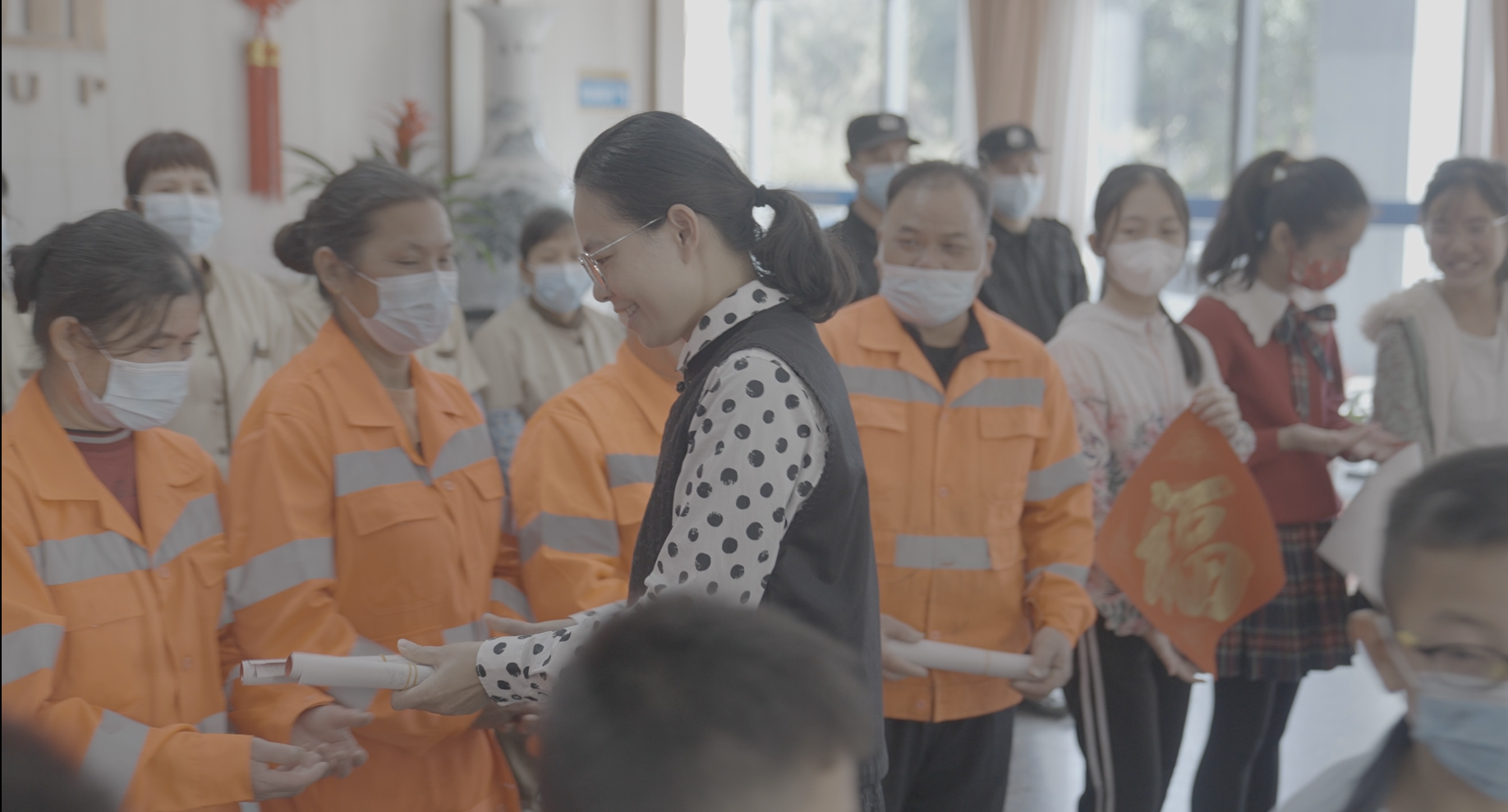 一平一仄譜喜悅,一撇一捺書祝福,活動(dòng)最后,公司領(lǐng)導(dǎo)及志愿者們向30名來自一線的市政、綠化工人與物業(yè)服務(wù)人員贈(zèng)送了春聯(lián),并向他們表達(dá)了濃濃的關(guān)懷和新春祝福。“春節(jié)貼春聯(lián)是我們的傳統(tǒng)習(xí)俗,過年的時(shí)候在家門口貼上親手寫的“福”字就更有意義了,非常感謝集團(tuán)公司在每年春節(jié)即將到來之際給我們送來這么好的禮物?!睒s鑫公司綠化工人唐素廂拿到春聯(lián)后高興地說。