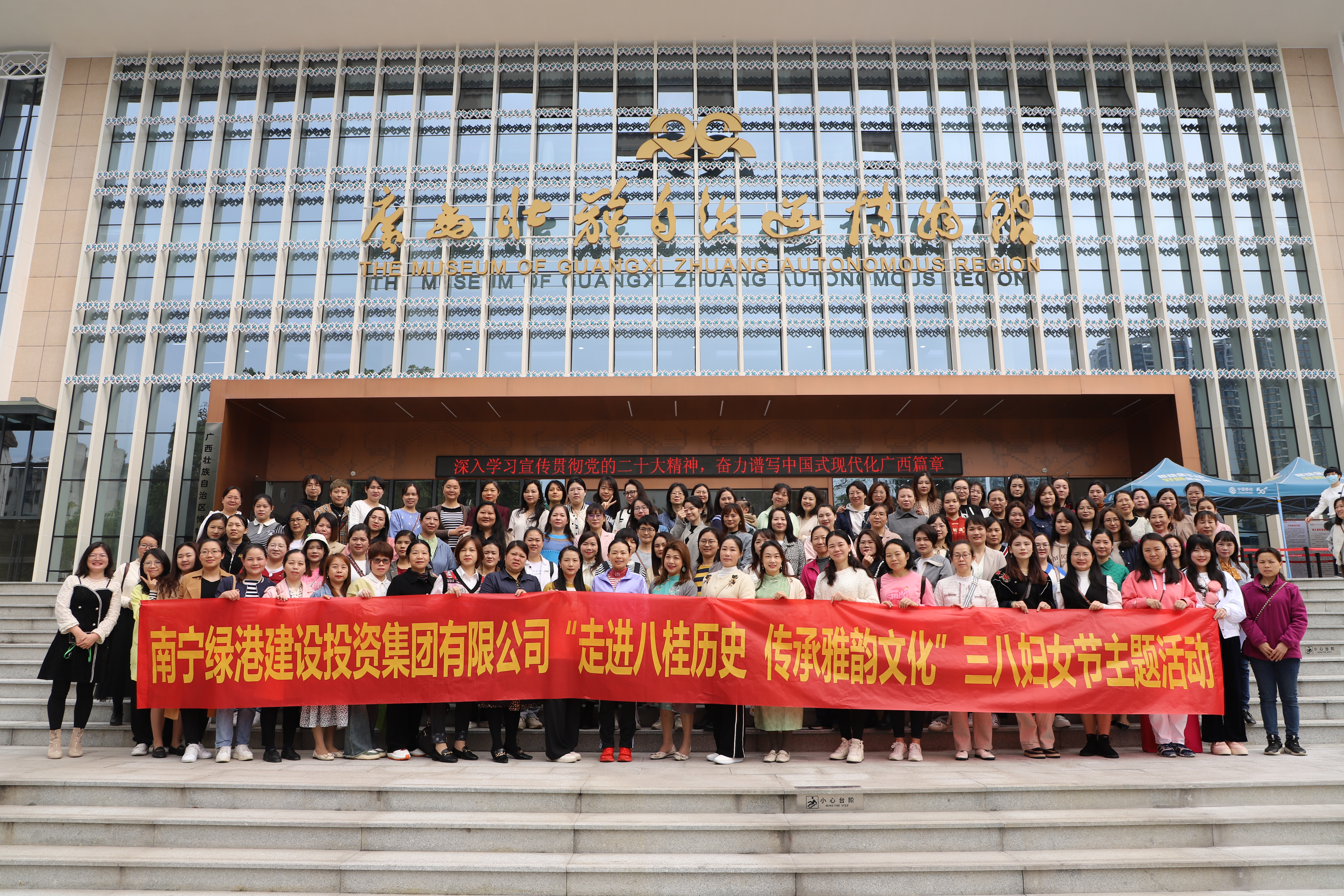 陽(yáng)春三月,春暖花開(kāi)。在“三八”國(guó)際婦女節(jié)到來(lái)之際,為讓綠港女性干部職工感受民族文化的魅力,了解廣西民族濃厚的歷史文化內(nèi)涵及藝術(shù)作品的獨(dú)特魅力,陶冶藝術(shù)情操、增加生活樂(lè)趣。3月8日,綠港集團(tuán)開(kāi)展“三八”國(guó)際婦女節(jié)主題活動(dòng),組織女職工到廣西博物館、民族文物苑進(jìn)行參觀游覽。集團(tuán)黨委委員、副總經(jīng)理、工會(huì)主席陸?hù)啾瘓F(tuán)黨委委員、副總經(jīng)理黃麗琴,集團(tuán)副總經(jīng)理、財(cái)務(wù)總監(jiān)關(guān)月娥出席活動(dòng)。綠港集團(tuán)全體管理崗位女職工約150人參加。