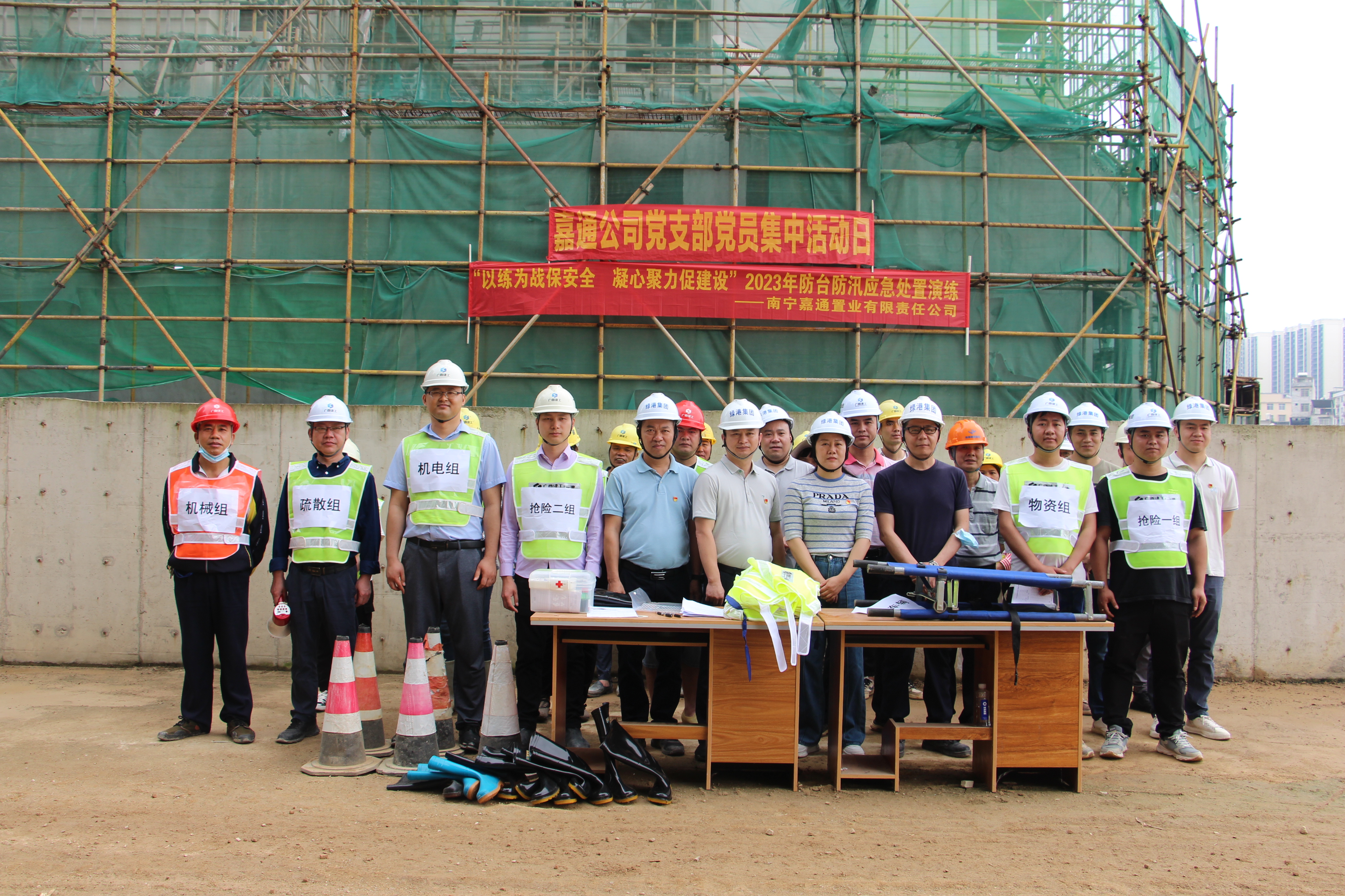 為進一步提升項目管理人員應對汛情的應急處置能力,提高員工防臺防汛的安全意識,保障項目現(xiàn)場的設備和人身財產(chǎn)安全,4月19日,嘉通公司聯(lián)合施工單位廣西建工第一建筑工程集團有限公司在綠港·尚尊一品項目現(xiàn)場開展“以練為戰(zhàn)保安全 凝心聚力促建設”2023年防臺防汛應急處置演練,全面筑牢安全生產(chǎn)防線。綠港集團安全監(jiān)督部、項目負責人、業(yè)主代表及一線施工人員約30人參加本次活動。集團黨委委員、副總經(jīng)理黃麗琴到現(xiàn)場觀摩指導并作防臺防汛工作部署。嘉通公司黨支部書記、總經(jīng)理何小勇在演練前致辭。