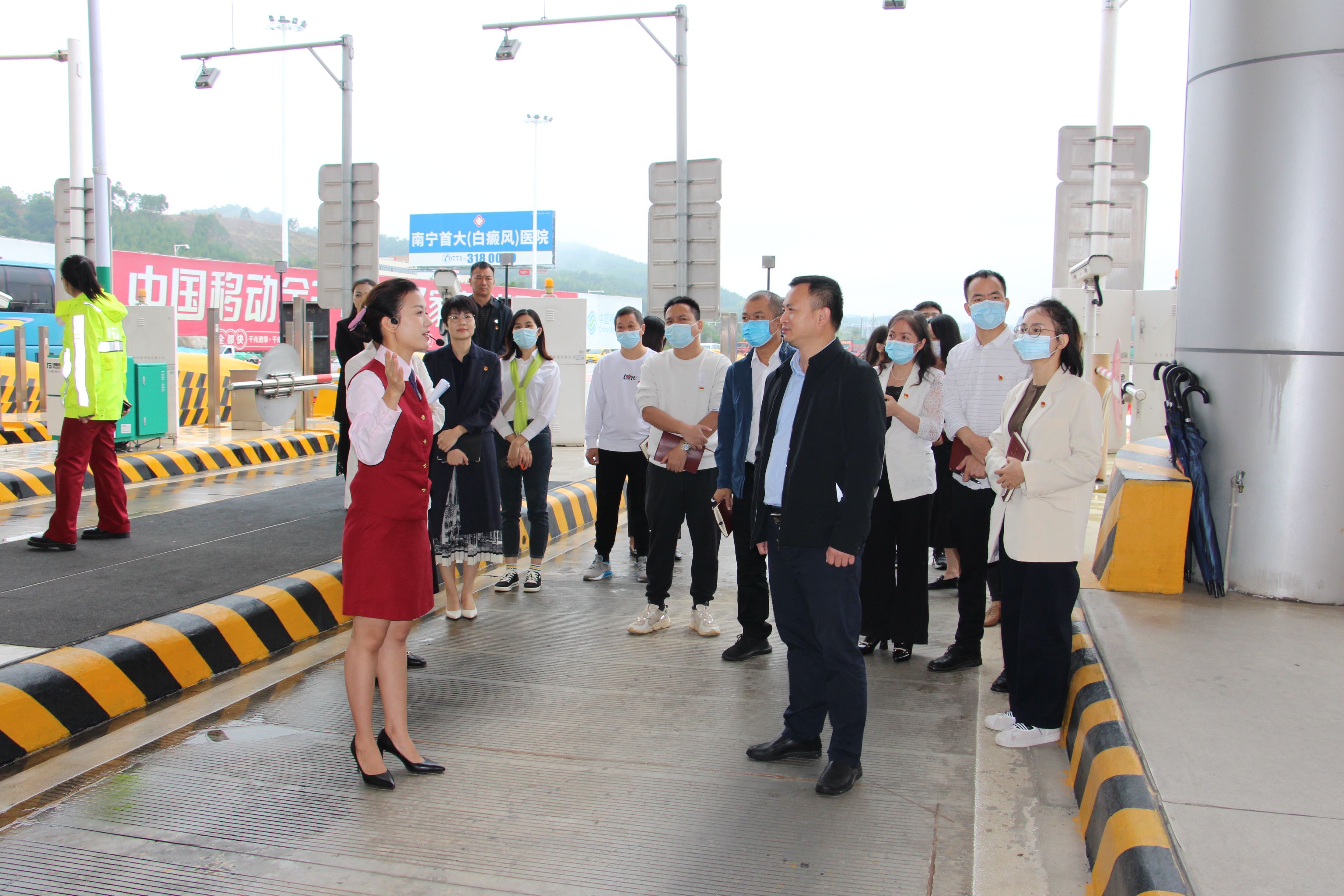 嘉通公司黨支部黨員們參觀了廣西交投高速公路運(yùn)營有限公司南寧東收費(fèi)站的地下文化長廊、黨員活動室、勞模工作室、班組室、書巢等,聽取了廣西交投集團(tuán)廣西交通投資集團(tuán)南寧高速公路運(yùn)營有限公司人事黨群部馮主任介紹公司發(fā)展歷程、人才發(fā)展、企業(yè)文化與主要成績、以及黨的二十大代表、全國勞動模范農(nóng)鳳娟同志的先進(jìn)典型事跡,并在書巢就學(xué)習(xí)宣傳貫徹落實黨的二十大及黨建工作經(jīng)驗等方面進(jìn)行座談。