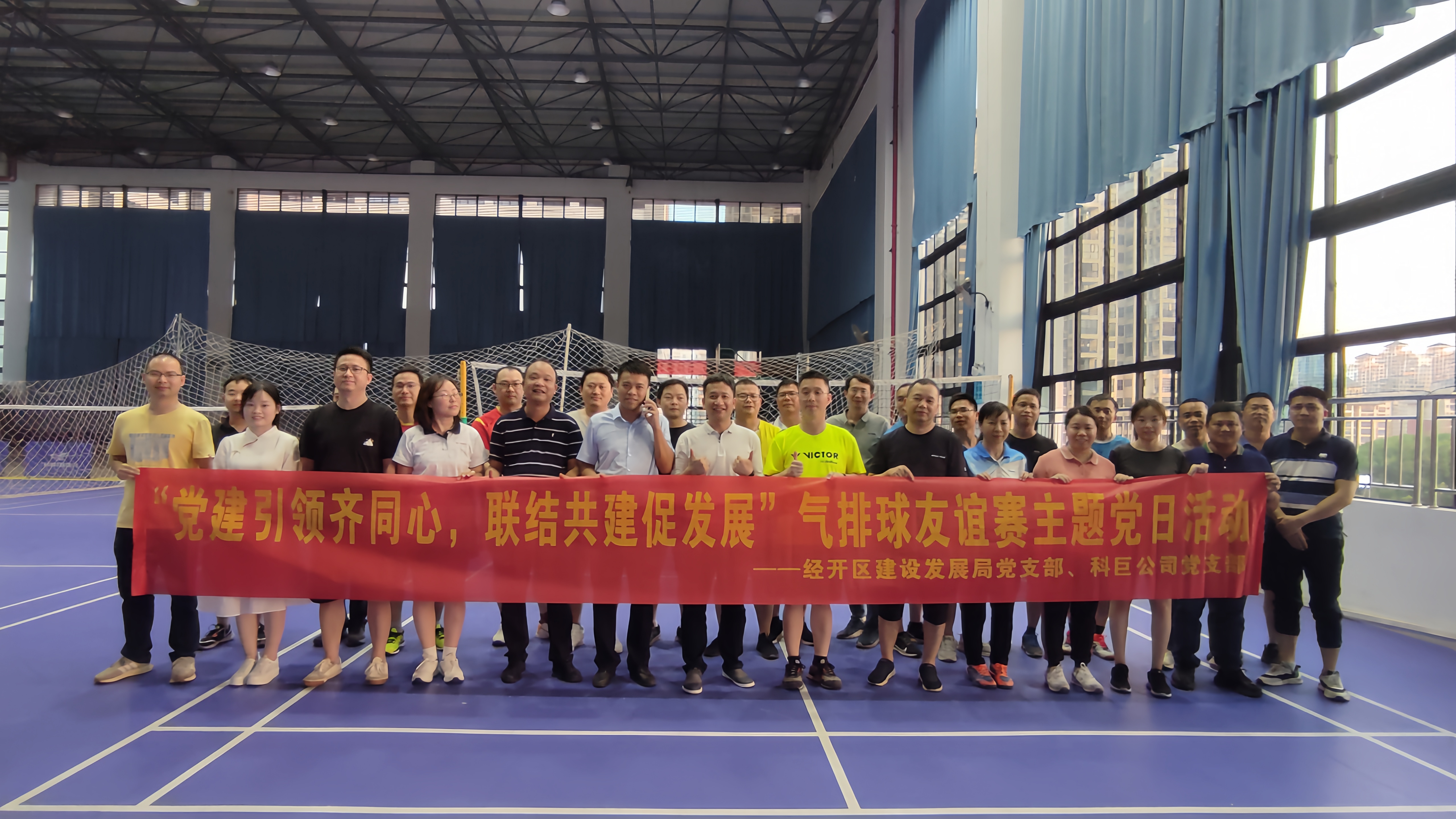 “今晚的友誼賽打得真是酣暢淋漓!”隊(duì)員們賽后仍然意猶未盡。5月30日,為進(jìn)一步增強(qiáng)黨支部之間的交流,科巨公司黨支部與經(jīng)開(kāi)區(qū)建設(shè)發(fā)展局黨支部在綠港·歡樂(lè)里魚(yú)悅體育館開(kāi)展了一場(chǎng)熱情洋溢、精彩紛呈的“黨建引領(lǐng)齊同心,聯(lián)結(jié)共建促發(fā)展”氣排球友誼賽主題黨日活動(dòng),以黨建為契機(jī),揮灑運(yùn)動(dòng)汗水,點(diǎn)燃夏日激情,強(qiáng)化政企溝通,增進(jìn)政企共識(shí),攜手共建經(jīng)開(kāi)新篇章!