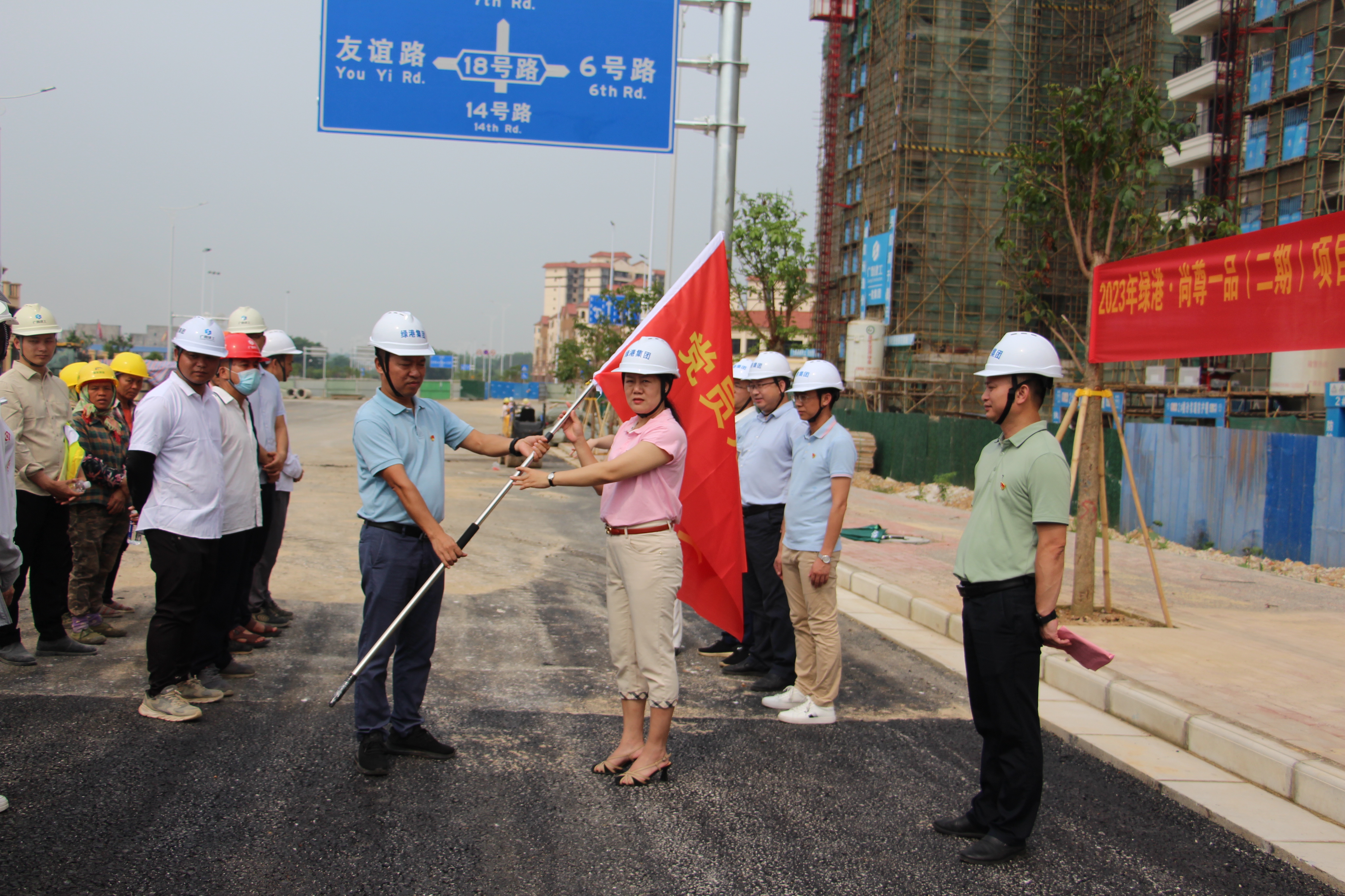 項目黨旗紅,一線先鋒行。為更好地服務項目建設,全方位打贏“民生精品工程交付”攻堅戰(zhàn),進一步強化基層黨組織和廣大黨員在生產經營各項工作中的戰(zhàn)斗堡壘和先鋒模范作用,充分展示黨員和青年在公司重點工程項目建設中的風采,6月13日,嘉通公司黨支部在綠港·尚尊一品(二期)項目現(xiàn)場舉行2023年“黨員先鋒隊”“青年突擊隊”授旗儀式。綠港集團黨委委員、副總經理黃麗琴出席活動并作講話。集團成本管理部、營銷管理中心、嘉通公司黨支部全體黨員以及項目施工單位、監(jiān)理單位參加活動。